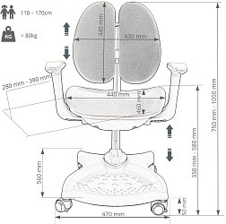 • Регулировка глубины сидения: 30.5 - 46.5 см