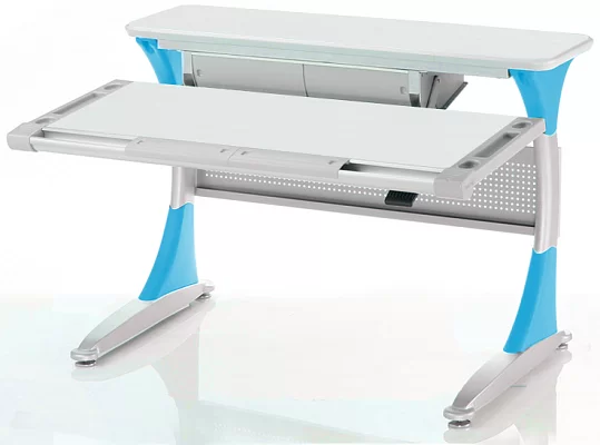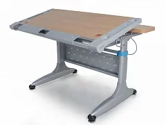 Удобная задняя полка-приставка и подвесной двухсекционный ящик создают легкодоступную зону хранения школьных учебников, тетрадей и принадлежностей. Впрочем, места с избытком хватит даже для установки монитора компьютера. Все расположенные на полке вещи никак не будут мешать изменению угла наклона столешницы или её высоты.