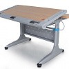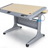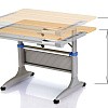 Подъёмный механизм данной модели оборудован системой «газлифт», чтобы малыш мог сам производить регулировку режимов. На поверхности столешницы созданы специальные углубления для размещения письменных принадлежностей и других школьных аксессуаров. Задняя полка-приставка сделана вровень с рабочей зоной, чтобы расширить её и создать удобные места хранения для учебников и тетрадей.