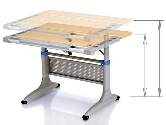 Угол наклона столешницы изменяется с помощью газ-лифта немецкой компании Stabilus, это обеспечивает плавность и безопасность наклона.