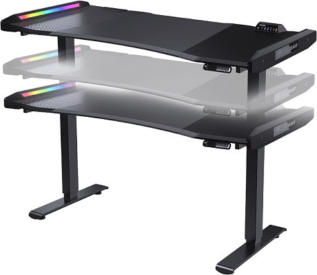 COUGAR E-MARS с двумя двигателями позволяет поднимать максимальную нагрузку до 100 кг, а с помощью простого рычажного управления вы можете легко регулировать высоту стола от 70 см до 115 см. Бесшумный мотор, громкость которого не превышает 50 дБ, обеспечивает тихую работу в комнате ночью.