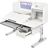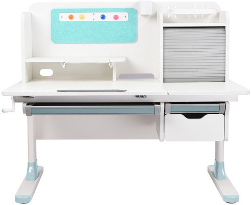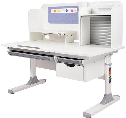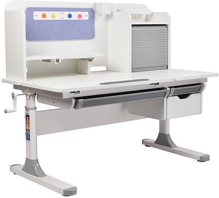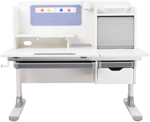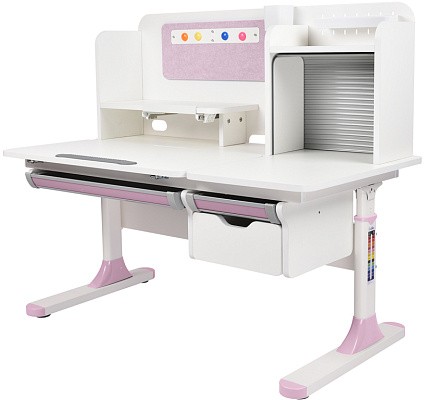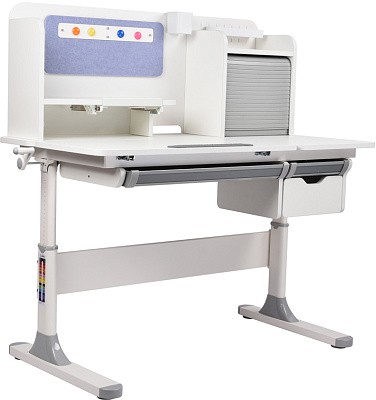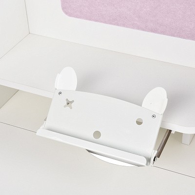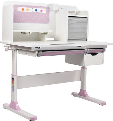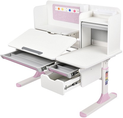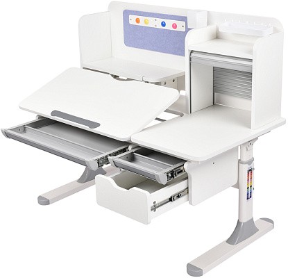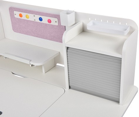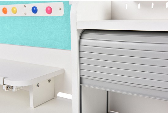 Столешница парты Camellia разделенная на две зоны рабочую (наклонную) и статичную, позволяет максимально эффективно использовать пространство во время учебы и развития вашего ребенка.Под столешницей располагаются три выдвижных ящика, два из которых имеют разделение на секции для более комфортного хранения вещей. Особенностью данной модели является надстройка со встроенной, выдвижной подставкой для книги, доска для заметок ,а также вместительная полка с роллетной дверцей.