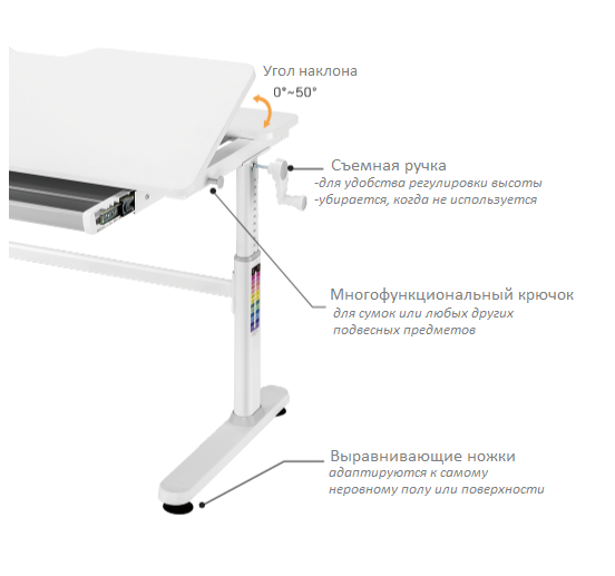 Формирование здоровых привычек, которые ребенок сможет перенести во взрослую жизнь, можно начать с того, что снабдить его эргономичным письменным столом. Рекомендуем использовать детский стол Iris с регулируемой высотой. Регулируемый по высоте рабочий стол и наклоняемая столешница позволяет ребенку улучшить осанку во время выполнения школьных заданий или хобби, таких как рисование или письмо. Это не только отличное дополнение к любой детской комнате, но и идеальное решение для школы, библиотек и т.п.