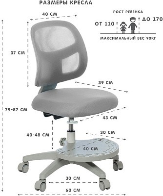 Для детей от 3 лет и до подросткового возраста. Подходит для роста от 110 до 170 см. Можно использовать как с растущей партой, так и с обычной. Изменяя глубину спинки и высоту сидения, Вы подберете наиболее комфортное положение для ребенка. Колеса имеют функцию стоп-вращения при посадке в кресло ребенка свыше 25 кг. Малыш не будет отвлекаться от уроков, катаясь на кресле. Кресло имеет регулируемую подставку для ног, которую можно снять при необходимости.