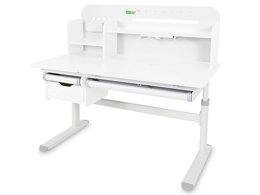 Регулировка высоты столешницы 52-76 см. Высота стола регулируется с помощью механической ручки, что дает возможность легко настроить парту под рост ребенка. Стол с трансформирующейся столешницей, которая изменяет угол наклона до 50 градусов с помощью механизма газлифт. Вы можете установить оптимальный угол наклона столешницы для чтения, письма или рисования.