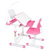 Прочная матовая столешница из МДФ дополнительно оснащена пластиковой полочкой, которая включает в себя пенал для карандашей, лампу, подстаканник и подставку для книг. Также столешница может изменять угол наклона. Покрытие столешницы устойчиво к механическим повреждениям и не отражает солнечные блики. Чтобы поддерживать стол в чистоте, достаточно протереть влажной тканевой салфеткой.