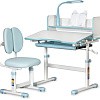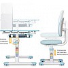 Высота столика изменяется механизмом плавной регулировки специальной ручкой, позволяющей с легкостью устанавливать парту в соответствии с ростом ребенка. Кресло регулируется по высоте и фиксируется винтами. На мощных металлических ножках есть мебельные опоры, помогающие установить комплект на неровных поверхностях.