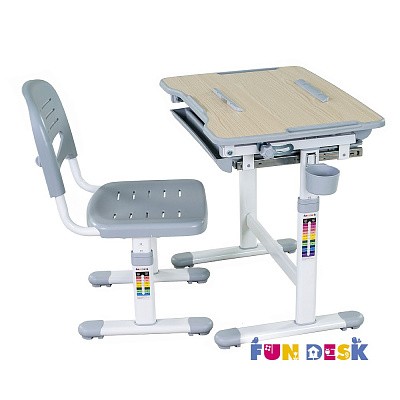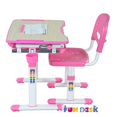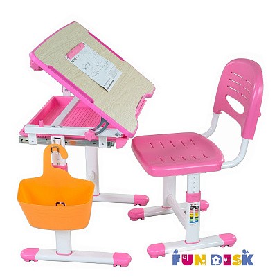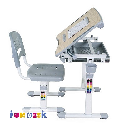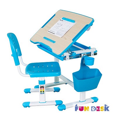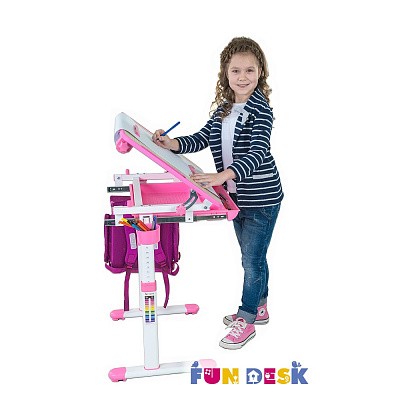 «ФанДеск» могут регулировать высоту парты под рост ребенка, а столешница может изменять угол наклона. Каждую модель можно оборудовать дополнительными аксессуарами. Парта «FunDesk» имеет множество ящиков для хранения канцелярских принадлежностей и тетрадей.