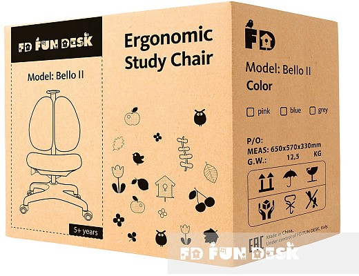 Ортопедическое кресло FunDesk Bello II способствует формированию правильной осанки и позволит снизить нагрузку на спинку Вашего ребенка при занятиях и развлечении. Специальный дизайн спинки производит эффект формирования осанки и ровной спины у ребенка, снимает негативные ощущения защемления мышц спины. Пневматическая пружина позволяет полностью скорректировать размеры кресла по высоте спинки и сиденья в отдельности. Наличие дополнительно встроенных стопперов в колесе обеспечивает надежность и устойчивость, а звездочное расположение препятствует опрокидыванию кресла. Легко передвигается при необходимости и полностью блокируется вращение колес при сидении. Материал экологически чистый, не имеет запаха и приятен на ощупь.