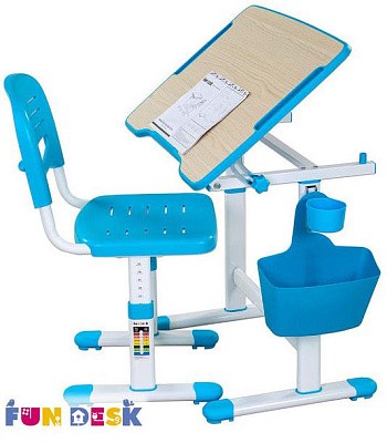 «ФанДеск» могут регулировать высоту парты под рост ребенка, а столешница может изменять угол наклона. Каждую модель можно оборудовать дополнительными аксессуарами. Парта «FunDesk» имеет множество ящиков для хранения канцелярских принадлежностей и тетрадей.