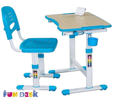 FunDesk Piccolino II – замечательный комплект, который создаст уют и комфорт для ребёнка в младших классах, поможет в правильном физиологическом развитии и защитит спину своего юного хозяина от различных угроз.
