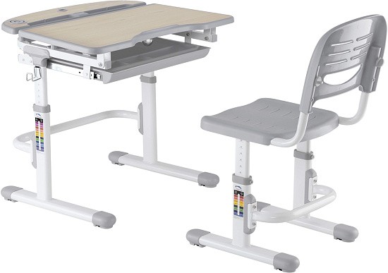 В комплекте предусмотрено всё до мелочей: от оригинальных решений в дизайне столешницы, до ящика для школьных принадлежностей и крючка для рюкзака. Не забыли производители и о взрослых – для их удобства на ножках парты и стула расположены удобные, интуитивно понятные таблицы, облегчающие процесс регулировки. Удобство всегда начинается с мелочей.