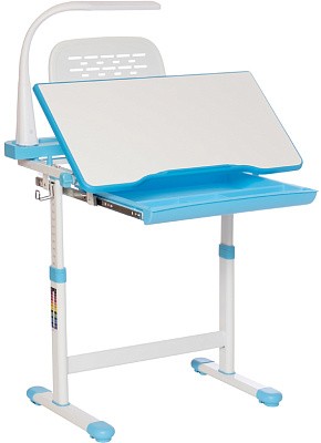Комплект растущей детской мебели Holto-11: парта с регулируемой подставкой для книг, usb-лампа и стул обеспечит ребенку хорошую правильную осанку на начальную школу и дошкольную подготовку. Наклон столешницы изменяется от 0 до 40 градусов. Парту возможно превратить в мольберт, что позволит ребенку рисовать в положении стоя. Ограничительный бортик не даст бумаги упасть. Стол оснащен крючком для портфеля, пеналом, выдвижным органайзером и подстаканником для порядка на рабочем месте. Комплект подходит для роста от 110 до 170 см. Максимальная нагрузка 60 кг. Ножки оснащены регуляторами высоты для компенсации неровностей пола.