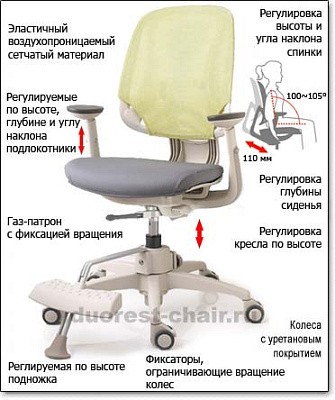 Настраиваемые параметры кресла обеспечивают максимально-возможное удобство для ребёнка во время учёбы или отдыха.
