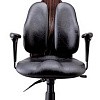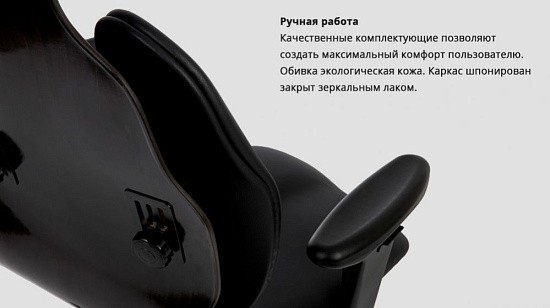 На задней части спинки кресла располагается панель с хромированными элементами настройки спинки, которые в сочетании с древесной текстурой каркаса придают креслу респектабельный, представительский вид. Плавно очерченный силуэт спинки, напоминает по форме виолончель.