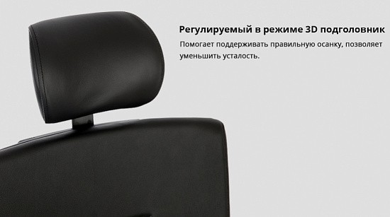 Подголовник так же обит кожей и регулируется по высоте и наклону, что обеспечивает комфортное положение головы.