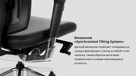 Главная особенность - механизм Synchronized Tilting System - позволяет пользователю откинуться на кресле для снятия напряжения со спины после длительной работы. Также эта система предусматривается как тренажер для опорно-двигательной системы, который не затрачивает сил. У качения есть регулировка жесткости, блокировка спинки в любом доступном наклоне для отдыха, а также 3 режима ограничения амплитуды качания, которые пользователь может подобрать под себя. Кинематика поддерживает тела, следуя за позой и не ограничивая естественные движения.