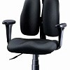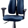 Основанием спинки служит металлический штифт, также он выполняет функции амортизатора, который работает на выпрямление корпуса в вертикальное положение. В зависимости от веса пользователя выравнивается упругость штифта, что позволяет сбалансировать нагрузку на позвоночник.