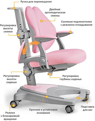 Важная особенность данного кресла - двойная спинка ортопедической формы, которая плотно прилегает к спине, поддерживая правильную осанку, а также создает максимальный комфорт во время занятий.