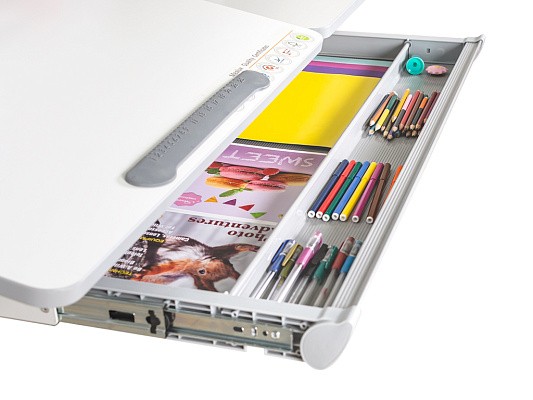 Стол имеет большой выдвижной органайзер размещенный под столешницей, который изготовлен из прочного, безопасного пластика.