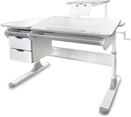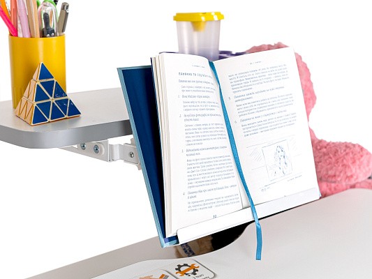 Lite версия стола представлена как без полки, так и с полкой BD-S 50. Полка позволит удобно разместить книгу или планшет на выдвижной металлической подставке для книги. С легкостью можно регулировать угол наклона подставки, а полка послужит для компактного размещения учебников, монитора и лампы.