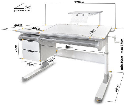 С помощью газлифта подвижная часть столешницы меняет угол наклона до 60 градусов. Столешницу с отрегулированым углом наклона можно использовать для письма, чтения и рисования.