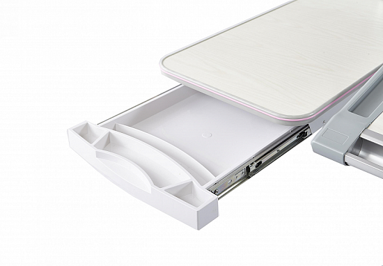 Под статичной часть столешницы размещен выдвижной органайзер с разделителями для удобного хранения канцтоваров и прочих школьных принадлежностей.