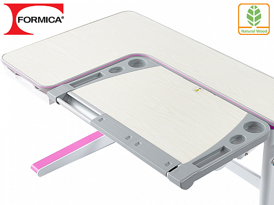 Под статичной часть столешницы размещен выдвижной органайзер с разделителями для удобного хранения канцтоваров и прочих школьных принадлежностей.