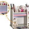 Часы-гигрометр с функцией измерения температуры и влажности в детской комнате. Кроме того, возможно установить будильник. Часы закреплены на металлическую стенку полки. Передняя панель доступна в голубом и розовом цвете, и прекрасно гармонирует со сменным декором парты.