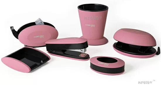 Фирменный набор канцтоваров от Comf-pro A/SY представлен в двух цветах салатовом и оранжевом. Он изготовлен из качественного прочного пластика, а поверхность покрыта резиноподобным матовым Soft-touch материалом.