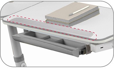 Как и все современные продукты, накладка разработана с целью решить сразу две задачи. В первую очередь, она защищает поверхность столешницы растущей парты от возможных повреждений. Вторая её особенность заключена в свойствах материала, из которого накладка изготовлена - силикон не позволяет скользить предметам по своей поверхности. Таким образом, книжка, тетрадь и ручка, оставленные на столе во время подъёма столешницы, не окажутся на полу. Ещё одним немаловажным аспектом является полная инертность и гипоаллергенность силикона. Руки ребёнка будут меньше потеть во время письма, когда кисть и предплечье плотно прилегают к поверхности стола.