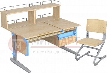 Парта 120 см с раздельной столешницей + тумба + 2 задние двухъярусные приставки