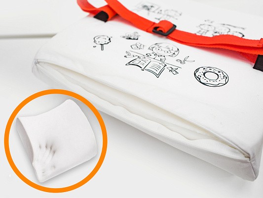 Еще одна ключевая особенность подушки - наполнитель из PU-пены c памятью формы (memory foam). Подушка адаптируется к анатомическому S-образному изгибу спины. Данный наполнитель абсолютно экологически чистый и безопасный, гипоаллергенный, не содержит вредных химических соединений. Также, стоит отметить, что чехол пошит из плотной хлопковой ткани.
