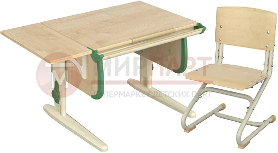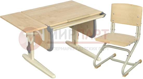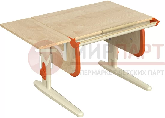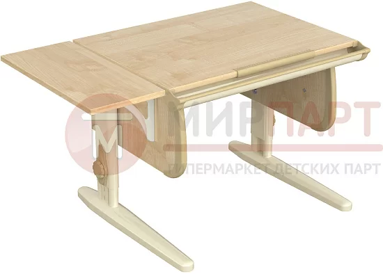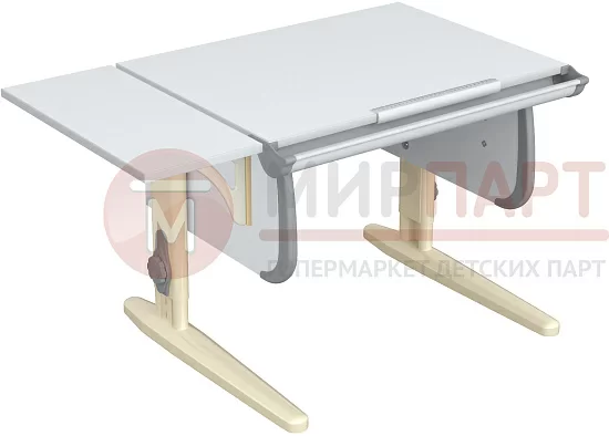 Рабочее пространство парты дополнительно расширено за счёт удобной боковой приставки. Она не наклоняется при изменении положения столешницы и оптимально подходит для размещения стаканчика с водой, компьютерной мышки и т. п. предметов.