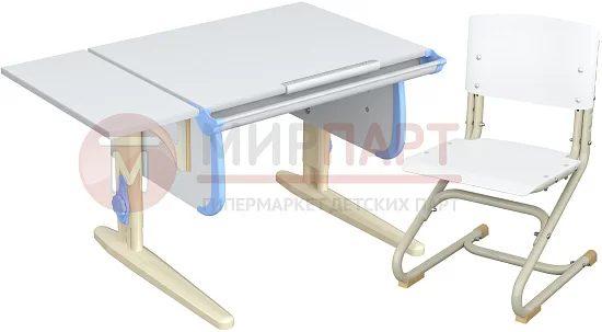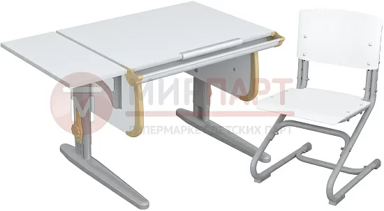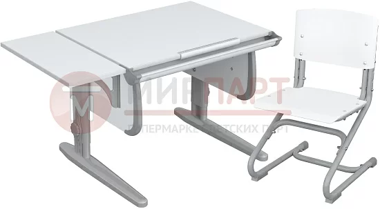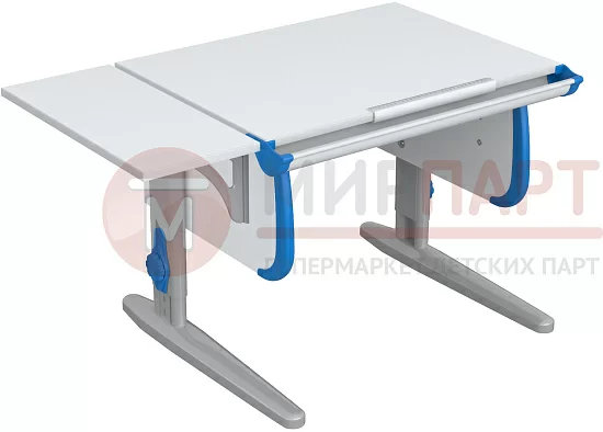 СУТ-24-01-К – это новинка из серии «Дэми-White», оборудованная короткой боковой полкой. Парта идеально подходит для того, чтобы обустроить в детской удобное и, вместе с тем, компактное рабочее место, которое будет служить ребёнку на всём протяжении его обучения в школе.