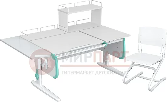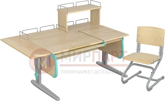 Парта 120 см с раздельной столешницей + задняя приставка + задняя двухъярусная приставка + боковая приставка 75 см
