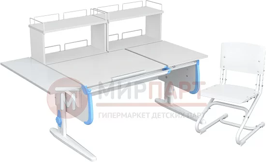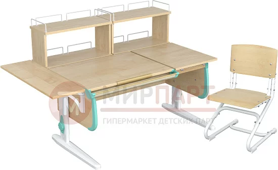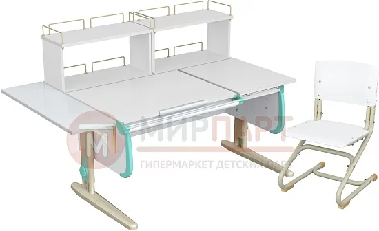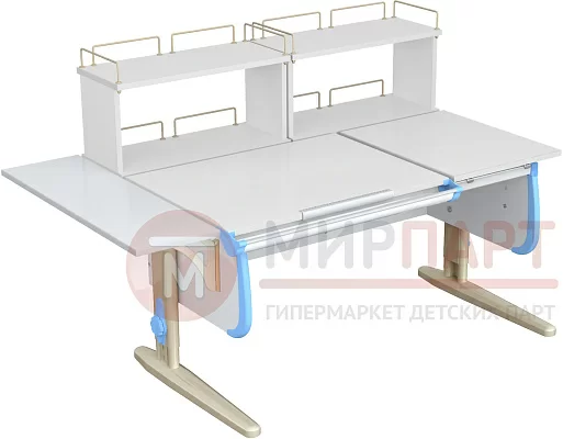 Парта 120 см с раздельной столешницей + 2 задние двухъярусные приставки + боковая приставка 75 см