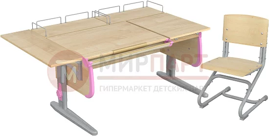 Парта 120 см с раздельной столешницей + 2 задние приставки + боковая приставка 75 см