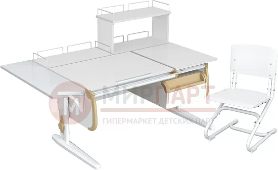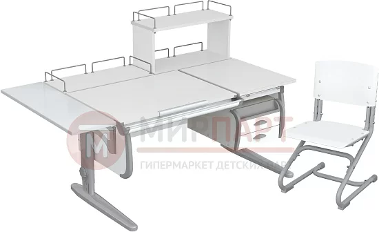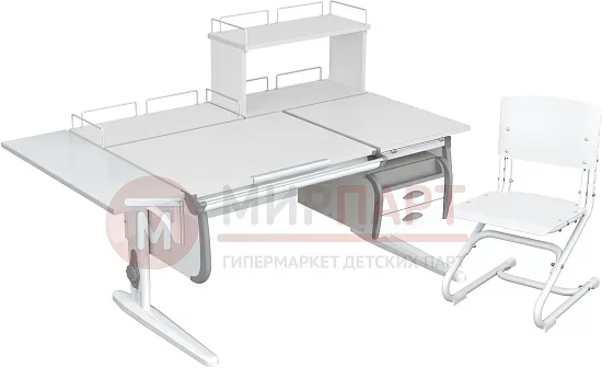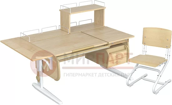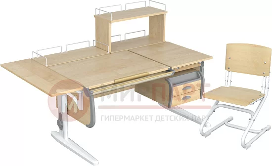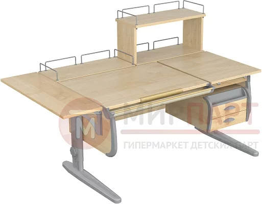 Парта 120 см с раздельной столешницей + тумба + задняя приставка + задняя двухъярусная приставка + боковая приставка 75 см