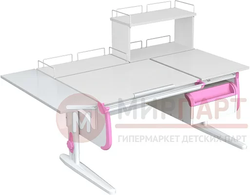 В арсенале СУТ 25-05-Д1 есть раздельная столешница для обеспечения комфорта во время занятий, подвесная тумбочка с двумя ящиками и пеналом, короткая боковая полка для тетрадей и учебников и две просторных задних приставки, одна из которых двухъярусная. Всё это богатство в совокупности превращает растущую парту в настоящий детский кабинет, возможностями которого не могут похвастаться и многие взрослые модели рабочих мест. В сочетании с ярким стильным дизайном белого цвета такие достоинства не могут оставить равнодушными ни своих будущих маленьких владельцев, ни их родителей.