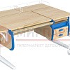 Функциональность парты также на высоте: раздельная столешница предоставляет возможность создания двух рабочих зон. Неподвижная часть отводится под хранение книг и учебников, в то время как угол наклона подвижной части легко может меняться, в зависимости от рода занятия ребенка – чтение, письмо, рисование или черчение. Тумбочка с двумя просторными ящиками и открытый пенал помогут школьнику разместить те вещи, которые не нужны постоянно, но должны оставаться под рукой. Две задние приставки плюс короткая боковая полочка завершают картину, создавая в итоге настоящий рабочий кабинет.