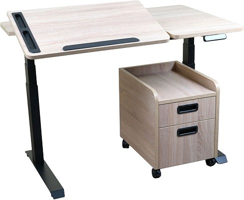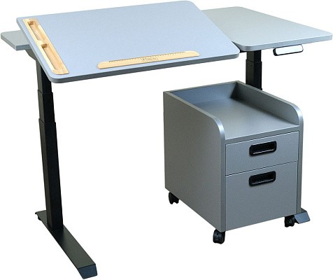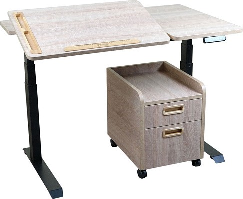 Электронный стол Trifecta со встроенной столешницей с изменяемым углом наклона— это самый эргономичный вариант среди всех столов с электроприводом! Рабочая поверхность столешницы снабжена органайзером для хранения канцтоваров, предотвращая их падение при изменении угла наклона. А также магнитной линейкой для удержания тетрадей во время письма.