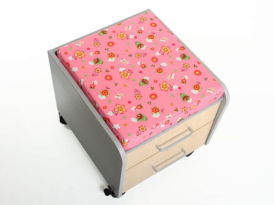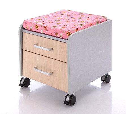 Удобство, компактность, функциональность – два вместительных ящика разместят все, что необходимо в учебном процессе. Углы и кромки скруглены, таким образом, риск случайной травмы сведен к минимуму. Кроме этого, конструкция тумбы включает в себя удобную мягкую подушку, которая превращает её в мягкий пуфик. Когда к ребенку будут приходить гости, тумбочка станет дополнительным сиденьем. Небольшие колесики позволяют легко катать тумбу по комнате, однако, если Ваш непоседа начнет на ней кататься сам, их можно заблокировать в одном положении.