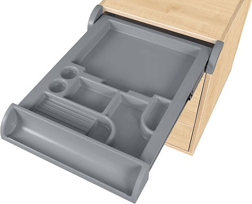 • Три выдвижных ящика высотой 10, 11 и 12 см