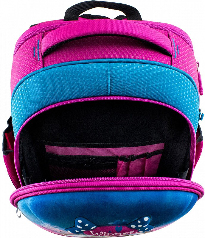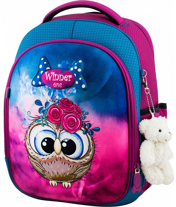 Ранец школьный «Winner» - изготовлен полностью по жестко-каркасной технологии. При максимальной нагрузке не меняет форму. Яркие цвета, необычные принты. Основное большое отделение у спины с тканевыми разделителями для школьных принадлежностей. В переднем отделении место для тетрадей и органайзер для письменных принадлежностей. Два кармана на липучке по бокам.