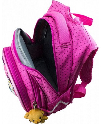 В рюкзаке три отделения. Первое основное и второе отделения без наполнения. Третье отделение с органайзером для письменных принадлежностей. По бокам два кармана-сеточки на резинке.